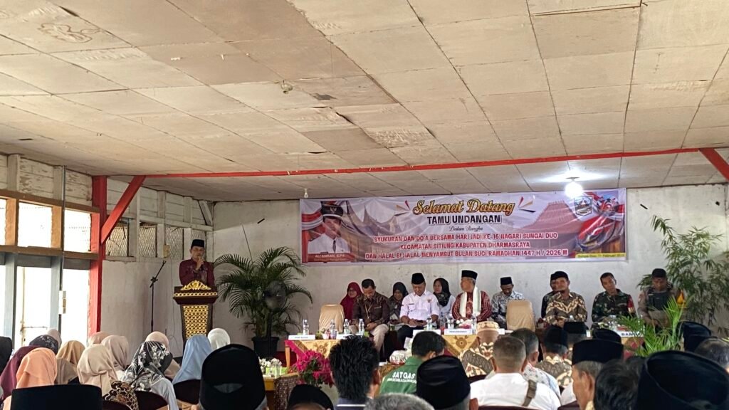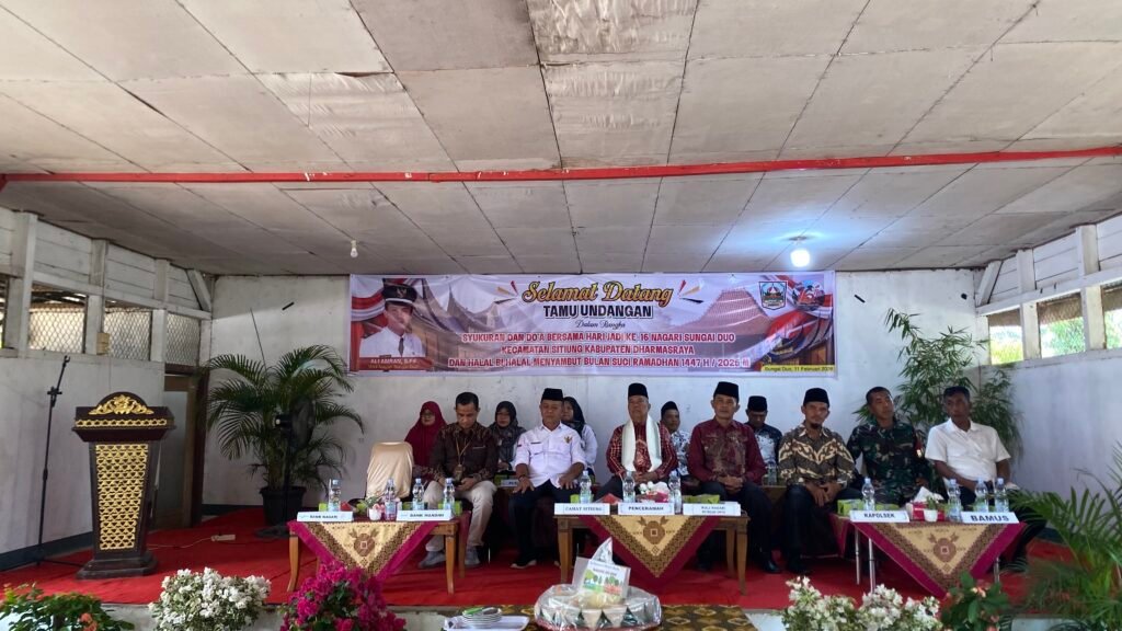 Sungai Duo, Rabu 11 Februari 2026 — Dalam rangka memperingati Hari Ulang Tahun (HUT) yang ke-16, Pemerintah Nagari (Pemnag) Sungai Duo menyelenggarakan acara syukuran dan doa bersama. Momen istimewa ini sekaligus dirangkaikan dengan tradisi Halal Bihalal untuk menyambut datangnya bulan suci Ramadan 1447 Hijriah. Acara yang berlangsung penuh rasa syukur dan kekeluargaan ini dilaksanakan pada 11 Februari 2026.